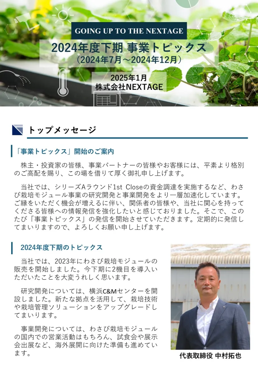 当社では、株主の皆様、当社に関心を持ってくださる皆様への情報発信を強化するため、「事業トピックス」の発信を開始することといたしました。