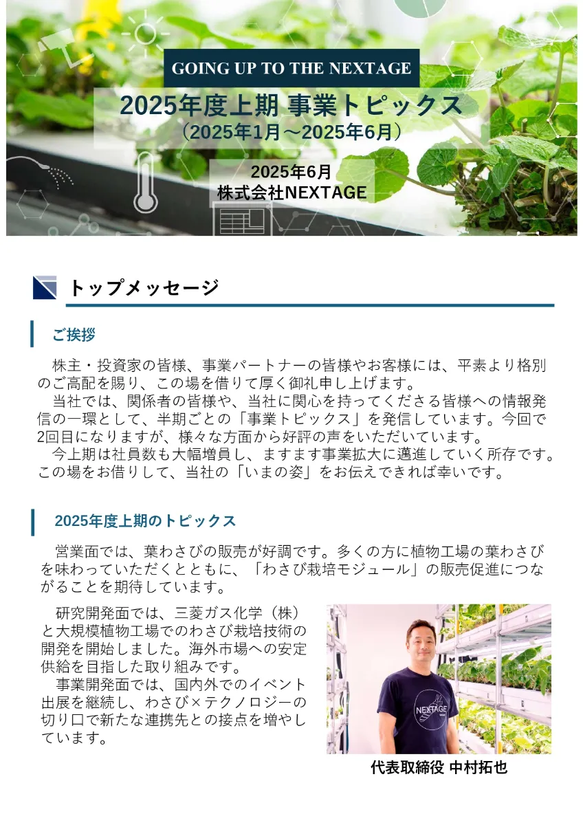 当社では、株主の皆様、当社に関心を持ってくださる皆様への情報発信の一環として、半期ごとの「事業トピックス」を発信しております。2回目となる今回は、2025年度上期(1月~6月)のトピックスをご紹介いたします。